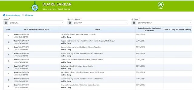 - STEP 4: Now the Duare Sarkar Camp List will appear on your desktop screen.