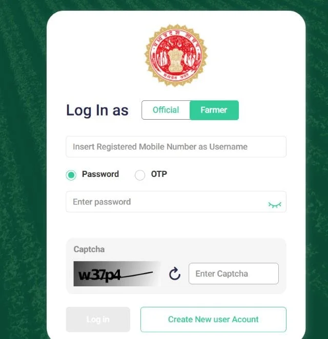 - होम पेज पर आपको Log In as मे Farmer के सेक्शन मे जाकर Create New User Account का लिंक मिलेगा आपको इस पर क्लिक करना है।