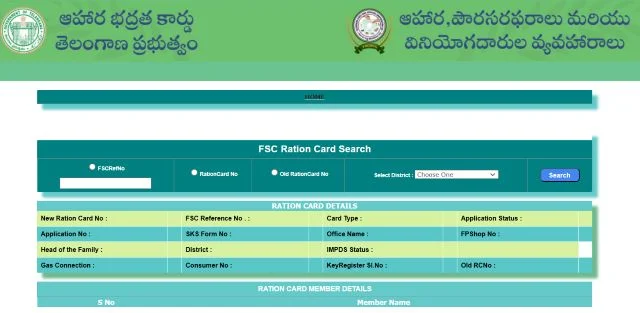 Check FSC Ration Card Search